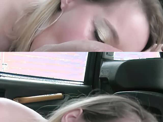 Juicy blonde ladies taste black dick on the backseat