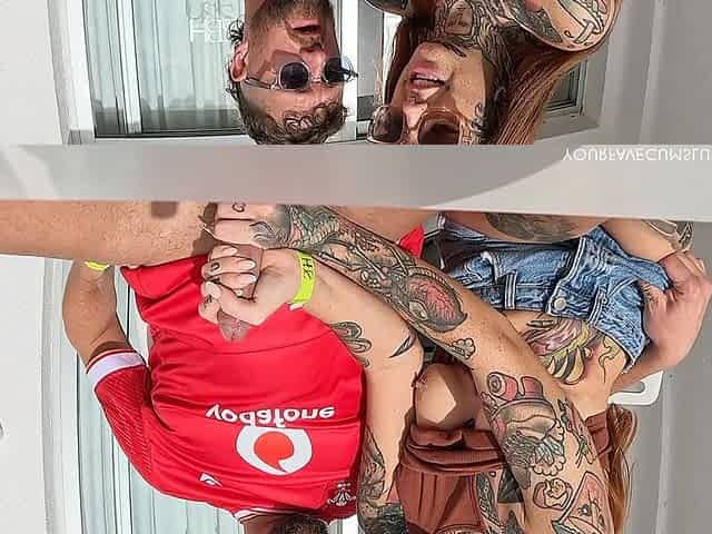 Stuck and Fucked on the Balcony: Big Tits, Big Ass Blowjob Porn