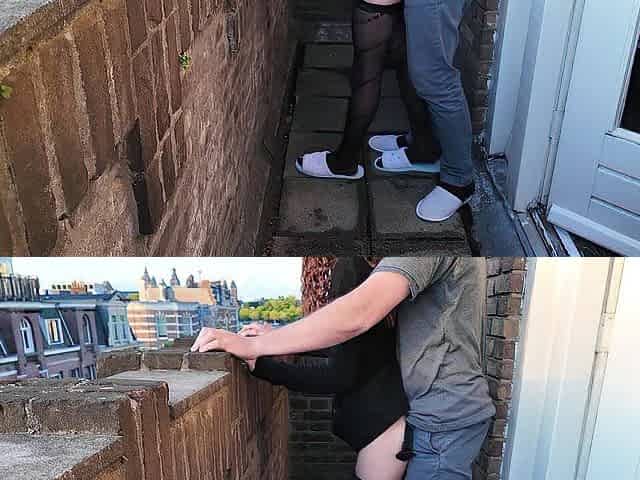 Sex In Public On The Balcony - Redhead Outdoor Sex