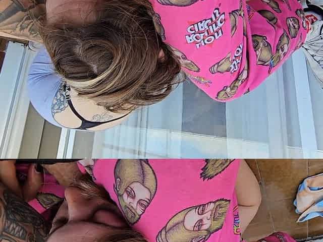 Sex On The Balcony With My Neighbor And His Wife Discovers Us With His Cock In My Mouth