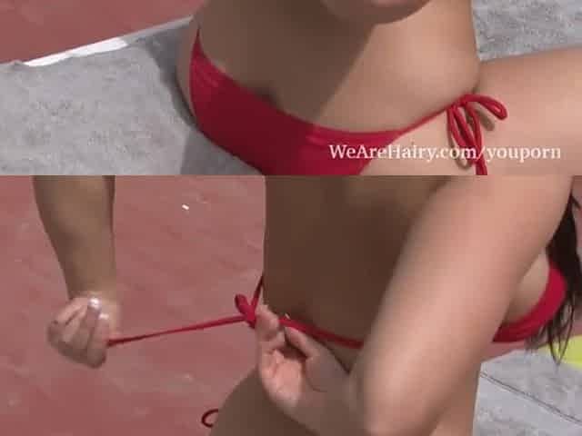 Unshaved Leanne gets frisky on the balcony