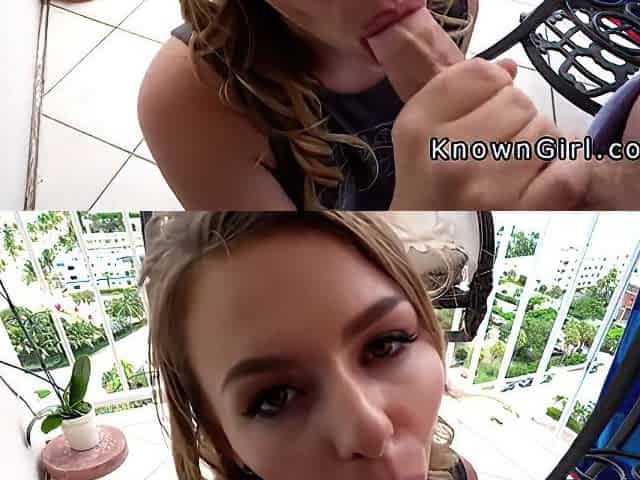 Blonde POV Blowjob and Facial on the Balcony