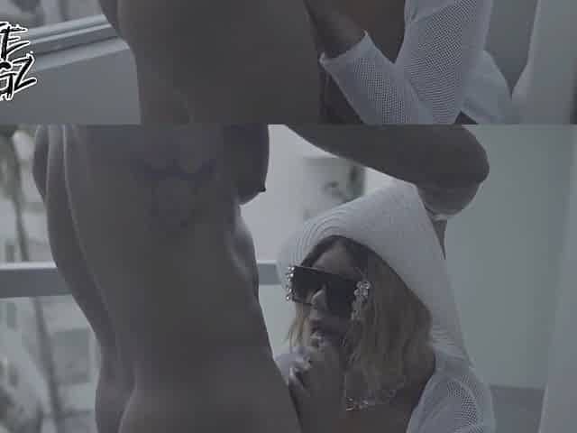 Sucking cock on the balcony, striping for her man, and then fucking with him, behind the scene with Ingrid