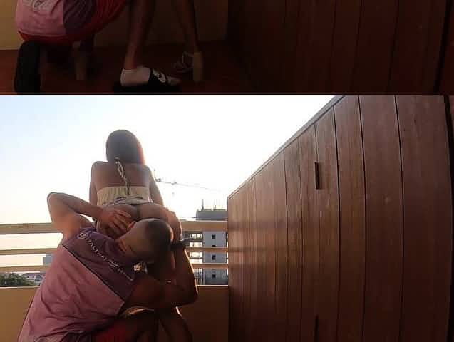 Teen couple having sex on the balcony