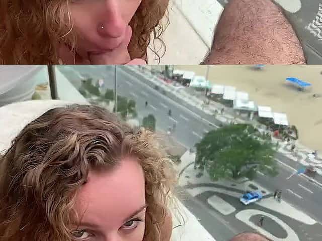Redhead big beautiful woman Gets Banged on Miami Balcony