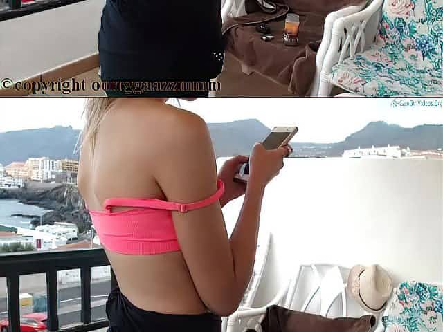 Girl Webcam - Blonde Cougar Plays With Toy In Her Balcony Webcam