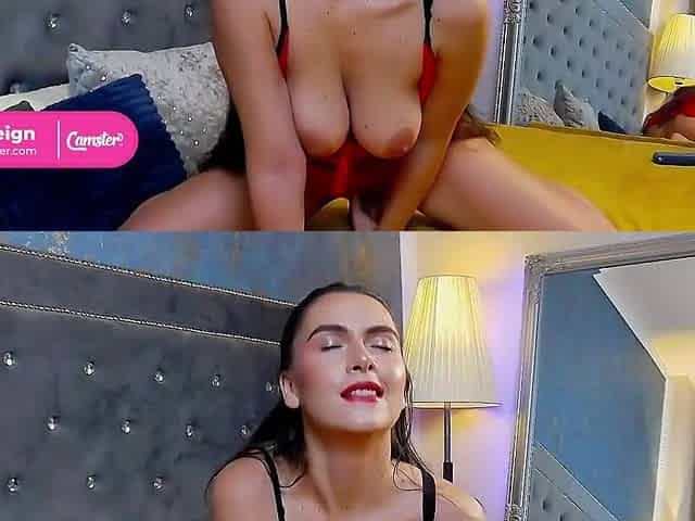 CAMSTER - Julia Reign - Breasty Dominant-bitch Ends Up with a Creamy and Gratified Bald Vagina