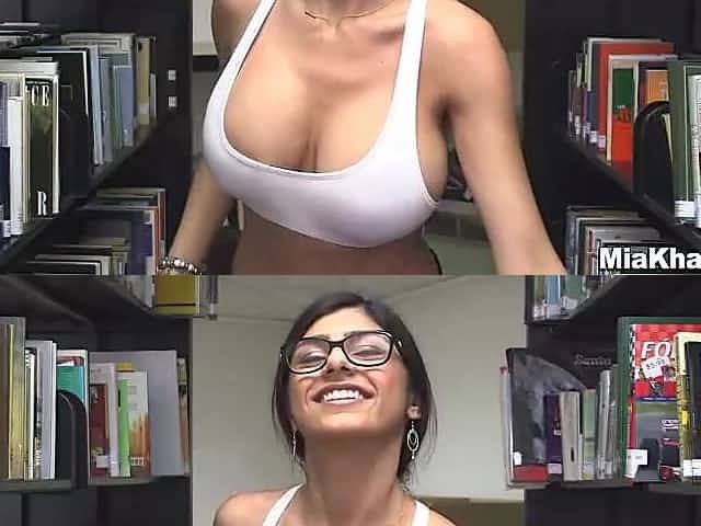 Large tited female is gently rubbing her perfectly bald snatch, whilst in the large library