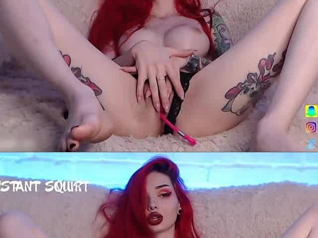Lexi Ward makes 2 dongs vanish in her tattooed hairless twat