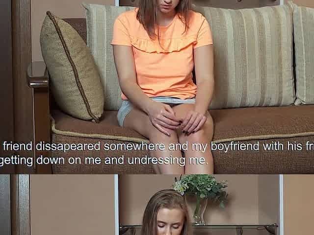DEVIANTE - Charming teen with puffy pink teats and hairless cunt cheats on her bf in the locker room