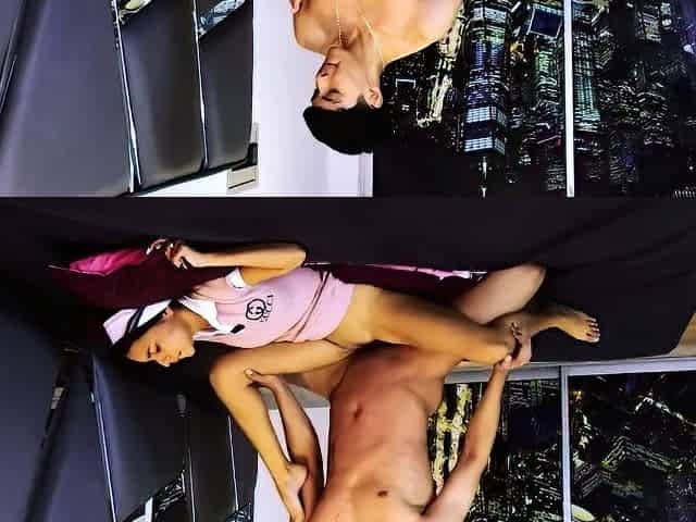 KerollynKv, uma jovem magra e submissa, tem uma intensa relação sexual na sacada e recebe muita porra em sua buceta.