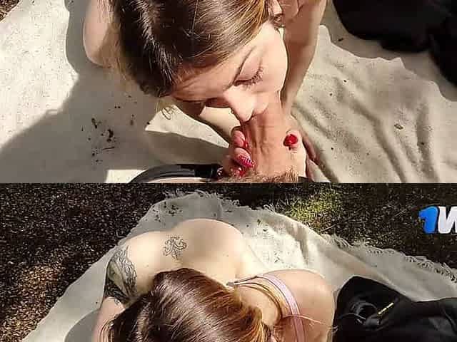 Beautiful sweetheart gets to feel warm load all over her gorgeous face