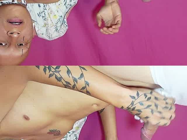 Indica Marie Jerks Off Large Wang Nick’s Rod And Rims His Bald Booty!