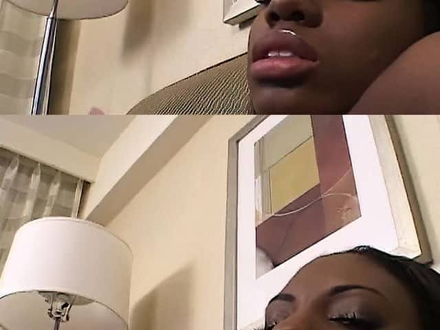 Foxy ebony nibbles his big knob and takes it up her bald cootch