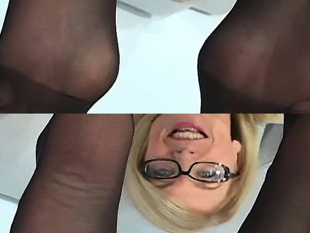 Mature blonde in glasses gets her bald cunny banged on the couch
