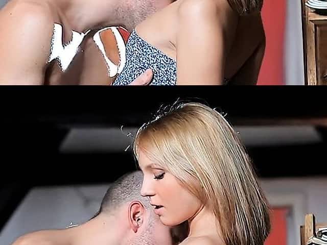 Hot blonde blows his rod and gets it shoved in her hairless twat