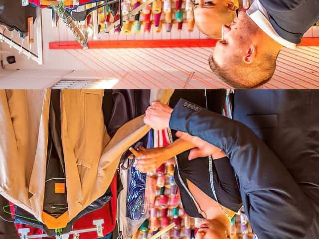 A hairless guy is sitting on the chair, whilst his bitchy brunette hair is riding his huge wang