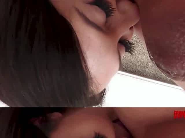The couple engaged in gentle sex while the brunette Clara Mia was topless.