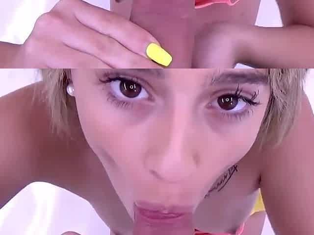 "Blonde MILF getting Messy Face Fuck Sucks Balls Jerks Big Cock till Cum then Deep Throat"