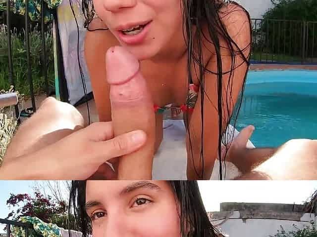 Slobbery Blowjob And Licking Balls From Teen With Sperm On Face And Tongue