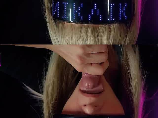 Сyberpunk angel greedily sucks all the cum out of her fan