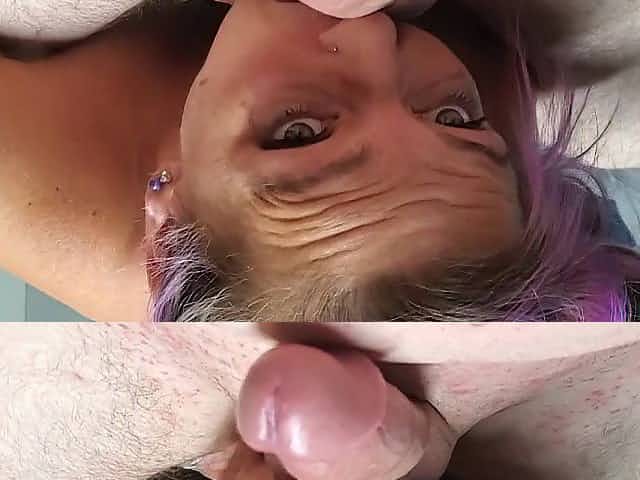 Horny old lady fingers pussy sucks balls gets cum in mouth