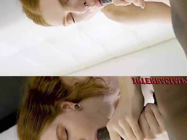 Great looking brunette hair is sucking a large, ebony jock and licking these balls after getting screwed