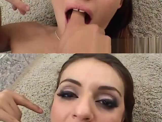 Hot Brunette Blowjob, Handjob Ball Lick, Cum in Mouth