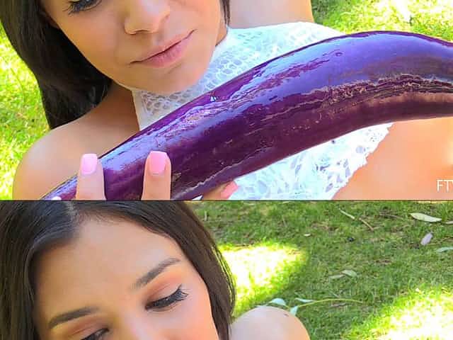 Stunning Sara Luvv Inserts A Real Banana And A Cucumber In Her Pussy