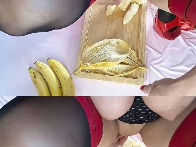 Amusa plays in her kitchen with a banana and more - WeAreHairy