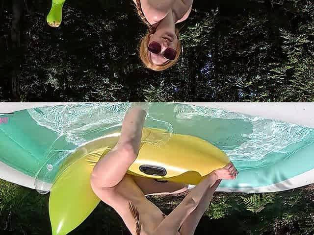 Alone on the porch with her horny wet pussy fucking a banana