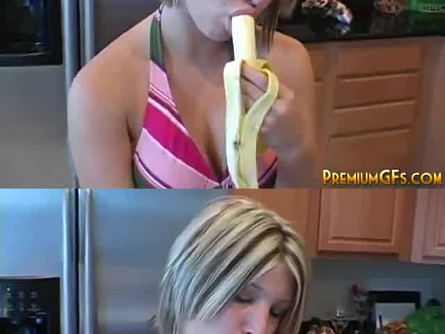 Shes Fucking A Big Banana Before Sucking On His Small Cock