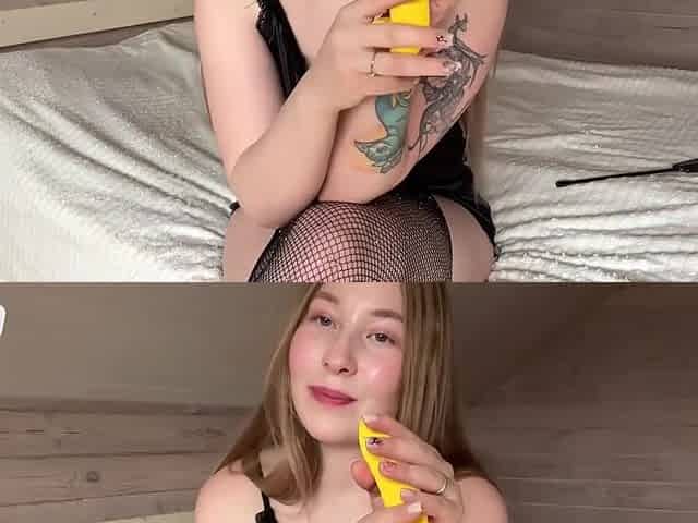 Nerdy Ingrida With Brille Late Night Mutual Masturbation With Bananas Fruit Jilling