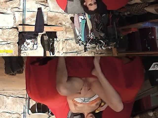 Brunette gives new meaning to banana split as she shoves one in her twat - BANG