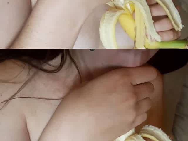 entertaining my pussy with a banana. banana orgasm!