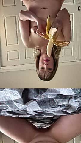 Blond Hair Teenage Girl Masturbates With Spoon and Banana