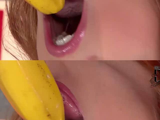 Mega busty blondie Richelle Ryan plays with a banana