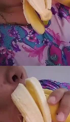 Playful Eve gets all wet while preparing a banana for a drilling session