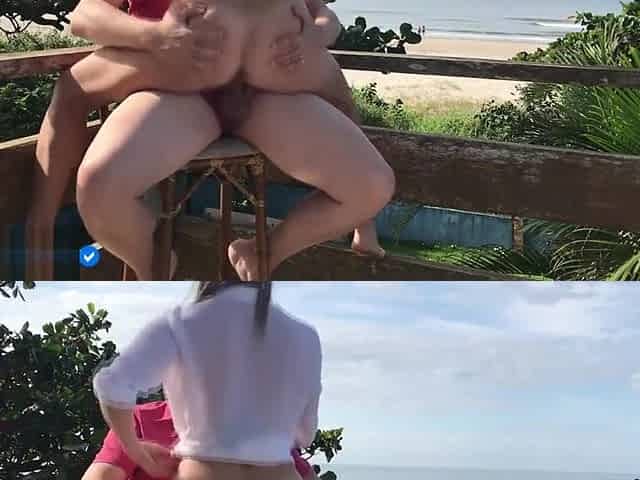 Outdoor sex in the bar stool on balcony, beach - anal ending