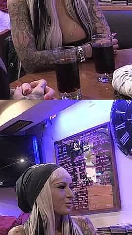 Blonde German Babe Gets Fucked by Two Cocks at the Bar