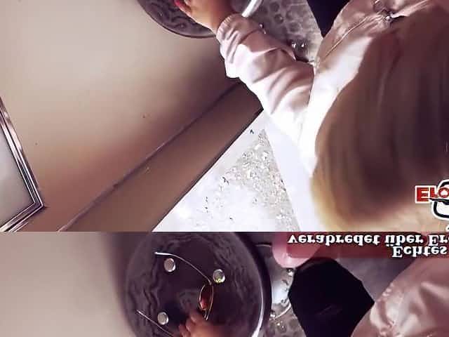 Gorgeous golden-haired honey gets her throat and cunt screwed in the bar