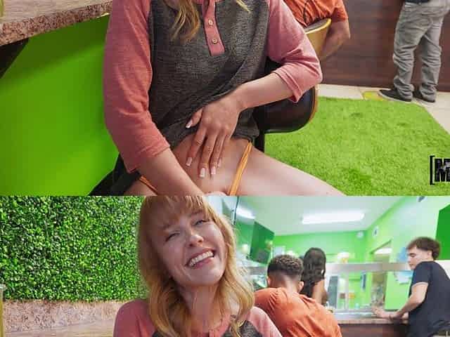Mya Ryker sucks it in the bar and downtown, showing off everywhere