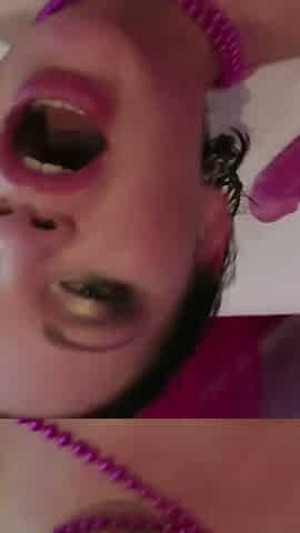 Chubby Slut Fucking a Suction Dildo Against the Shower Door