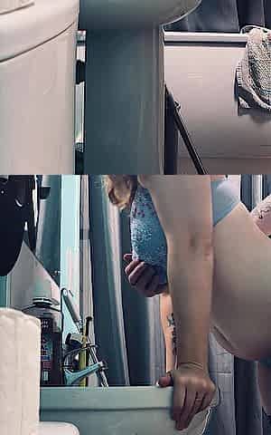 Kinky Brunette Pepper Pissing and Playing in the Bathroom