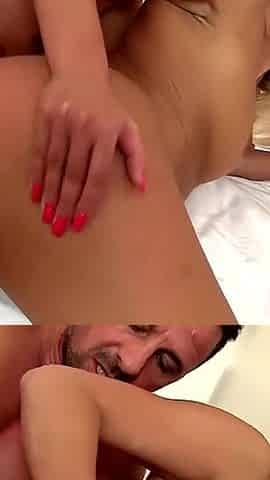 I See My Beautiful Brunette Stepsister Changing Her Clothes in the Bathroom and I Seduce Her to Fuck Her