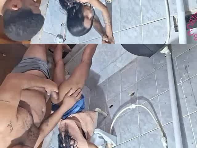 Hot Young Brunette with a Huge Boyfriend in the Bathroom