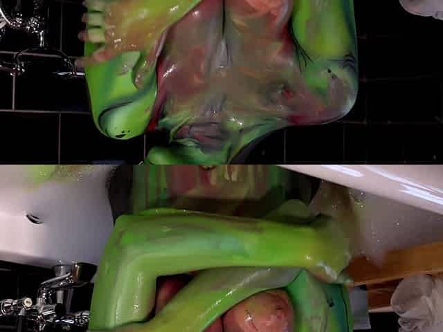 Lola Sky masturbates in the washroom and has an biggest lengthy squirting climax
