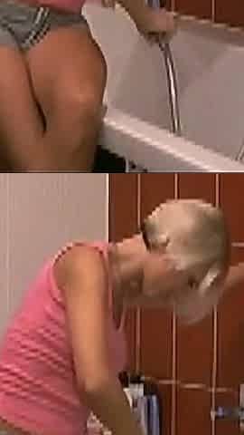 hawt alternative golden-haired teases in bathtub with ebony underware and fishnets