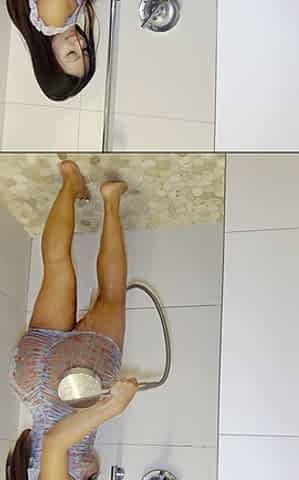 The Dildo Play While Taking Shower in Nylons