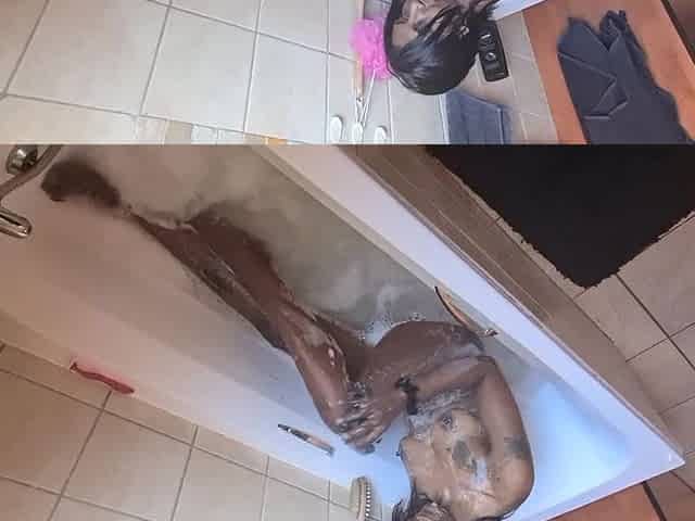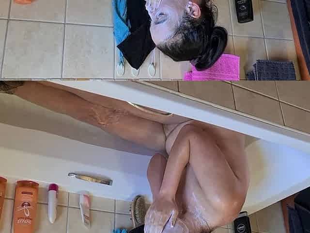 Big Ass Small Boobs Slut Enjoys a Warm Soapy Bath, Close Ups